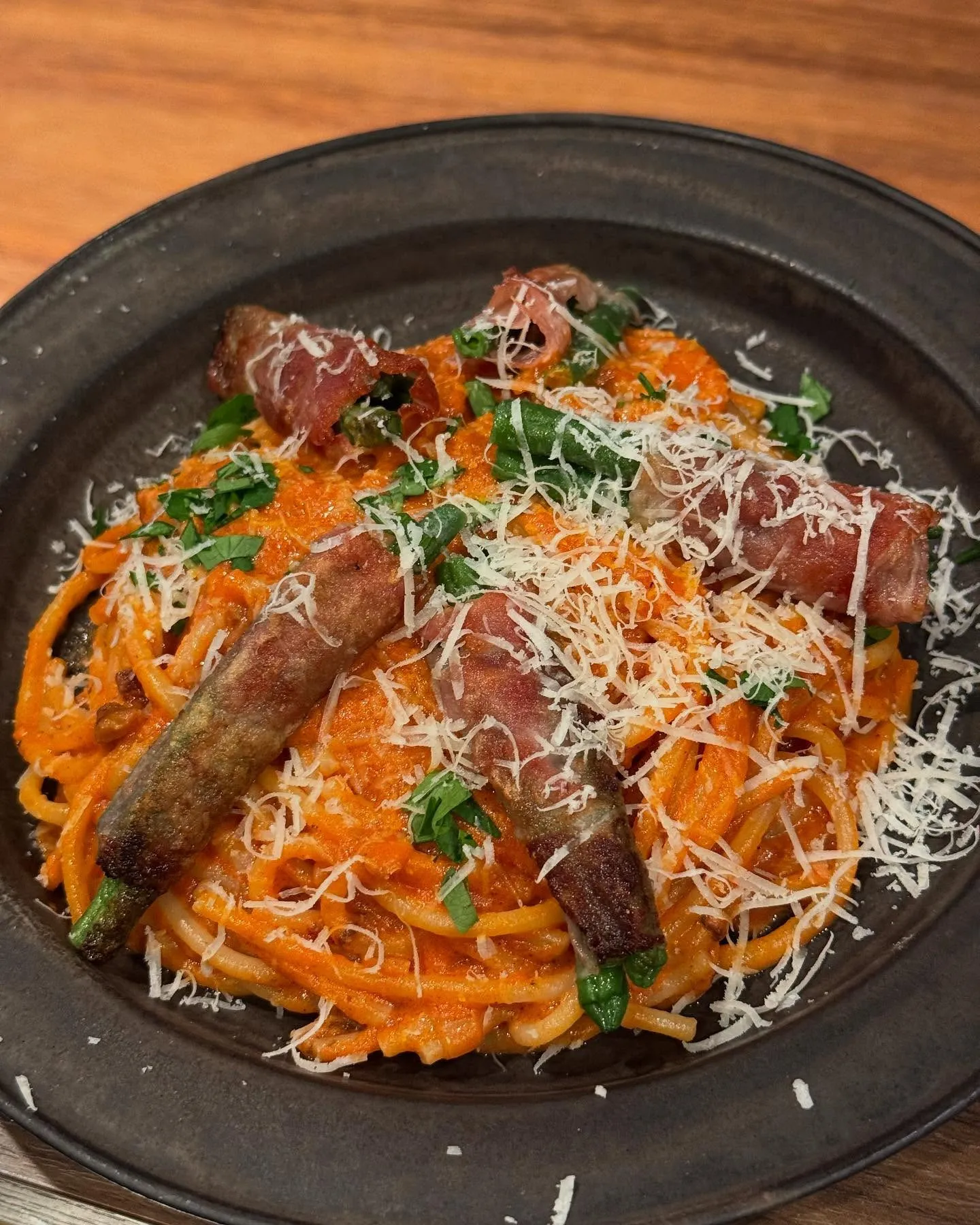 今日のおすすめパスタ 2025/05/08 今日のおすすめパスタ いんげんと生ハム巻きのトマトクリームスパゲッティ ソースのコクが楽しめます 新宿イタリアンバルチャルーダ #新宿グルメ#新宿ディナー#歌舞伎町グルメ#歌舞伎町ディナー#イタリアン料理